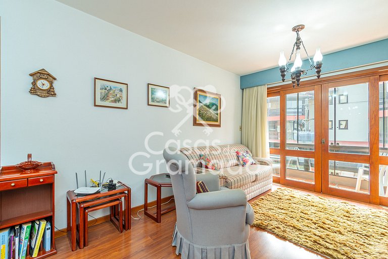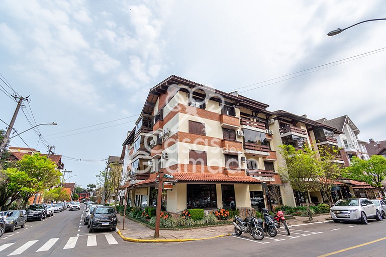 Welcome to a fully equipped apartment with a large balcony and city views, just 100 meters from Rua Coberta, right in the center of Gramado.