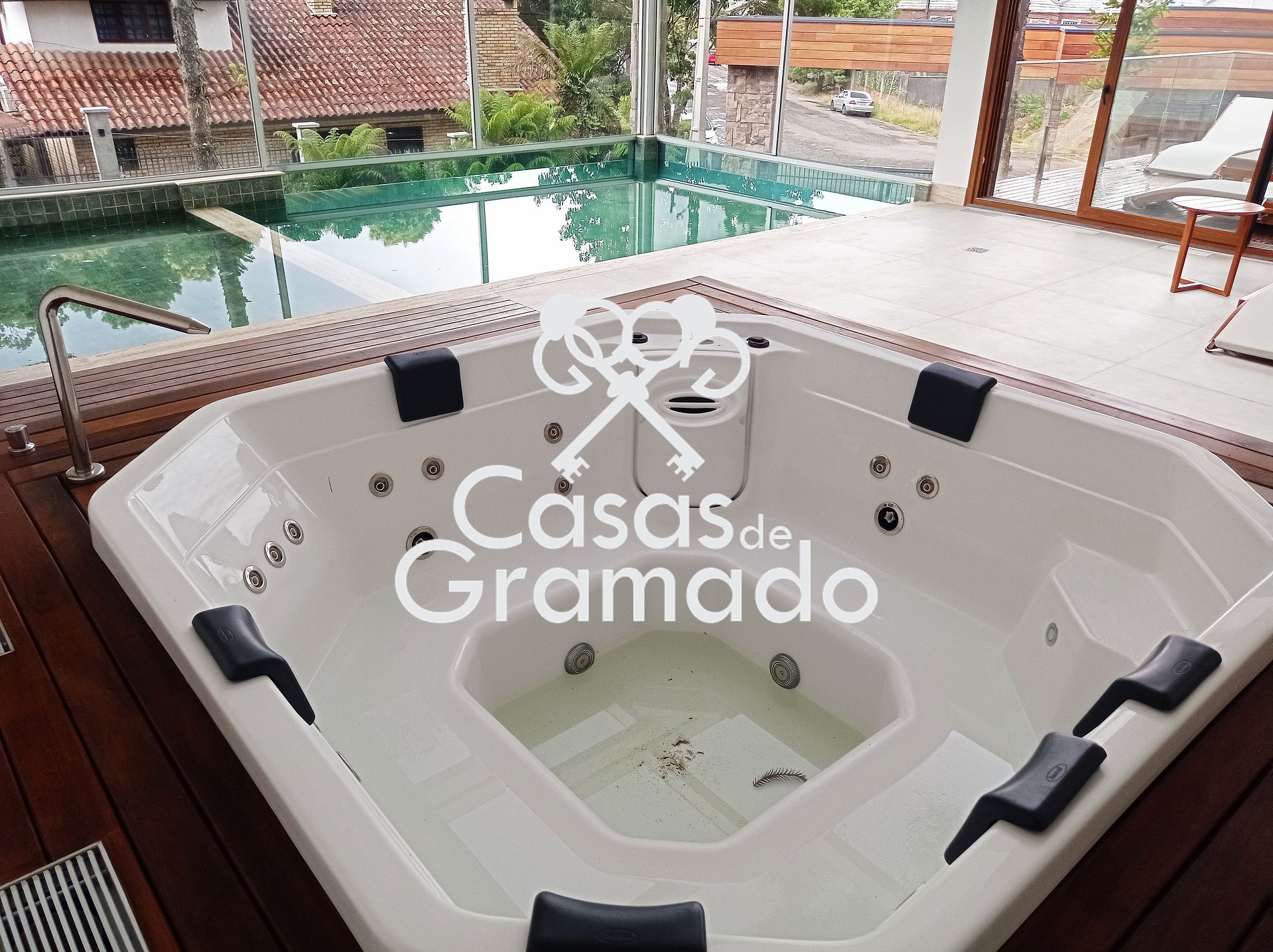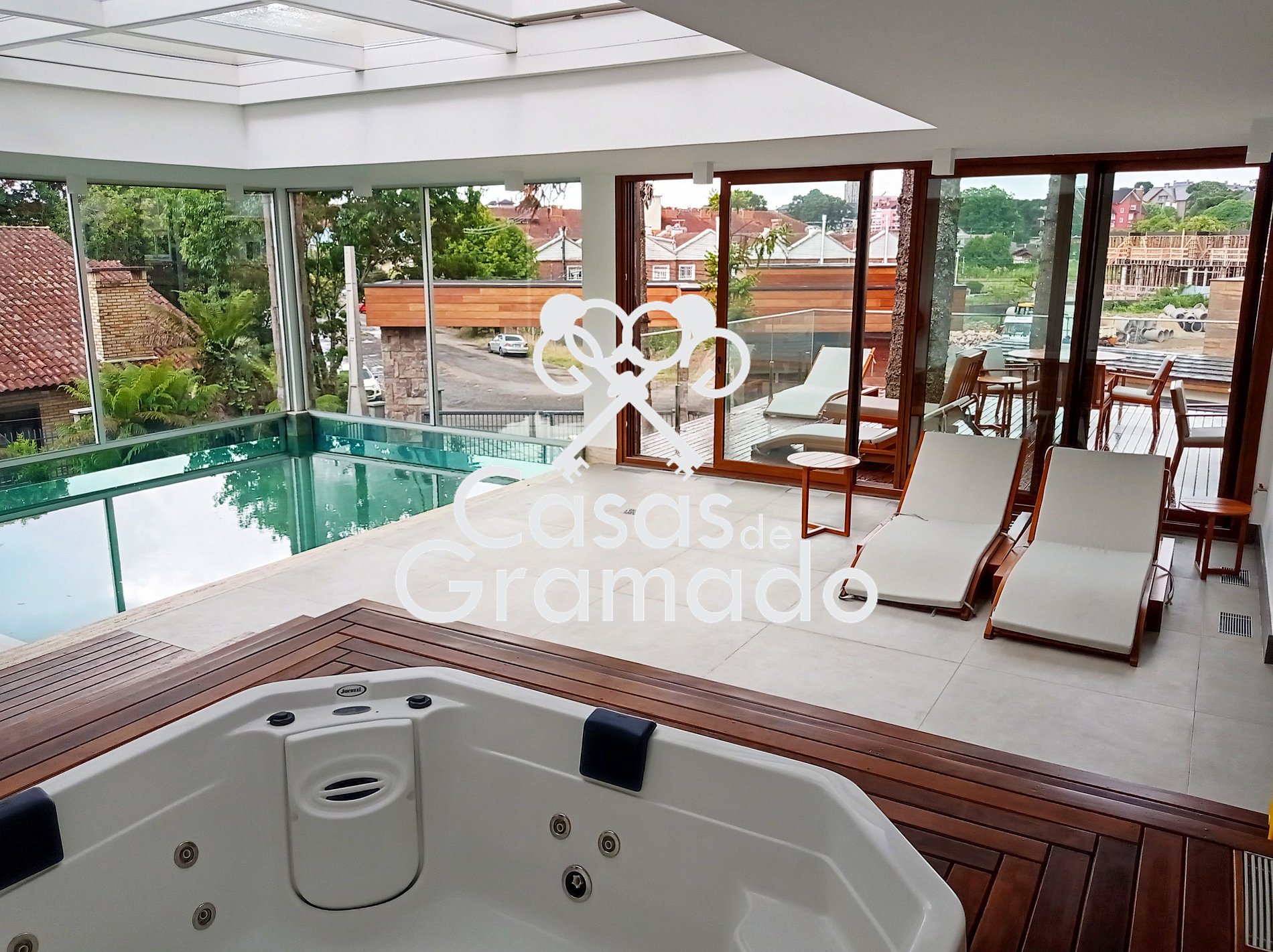 Além de possuir cozinha completa, sala super confortável, garagem, wi-fi, ar condicionado, oferece ainda aos seus hóspedes uma completa estrutura de lazer, com piscina térmica, hidro spa, academia, lounge lareira, deck, jardins, etc.