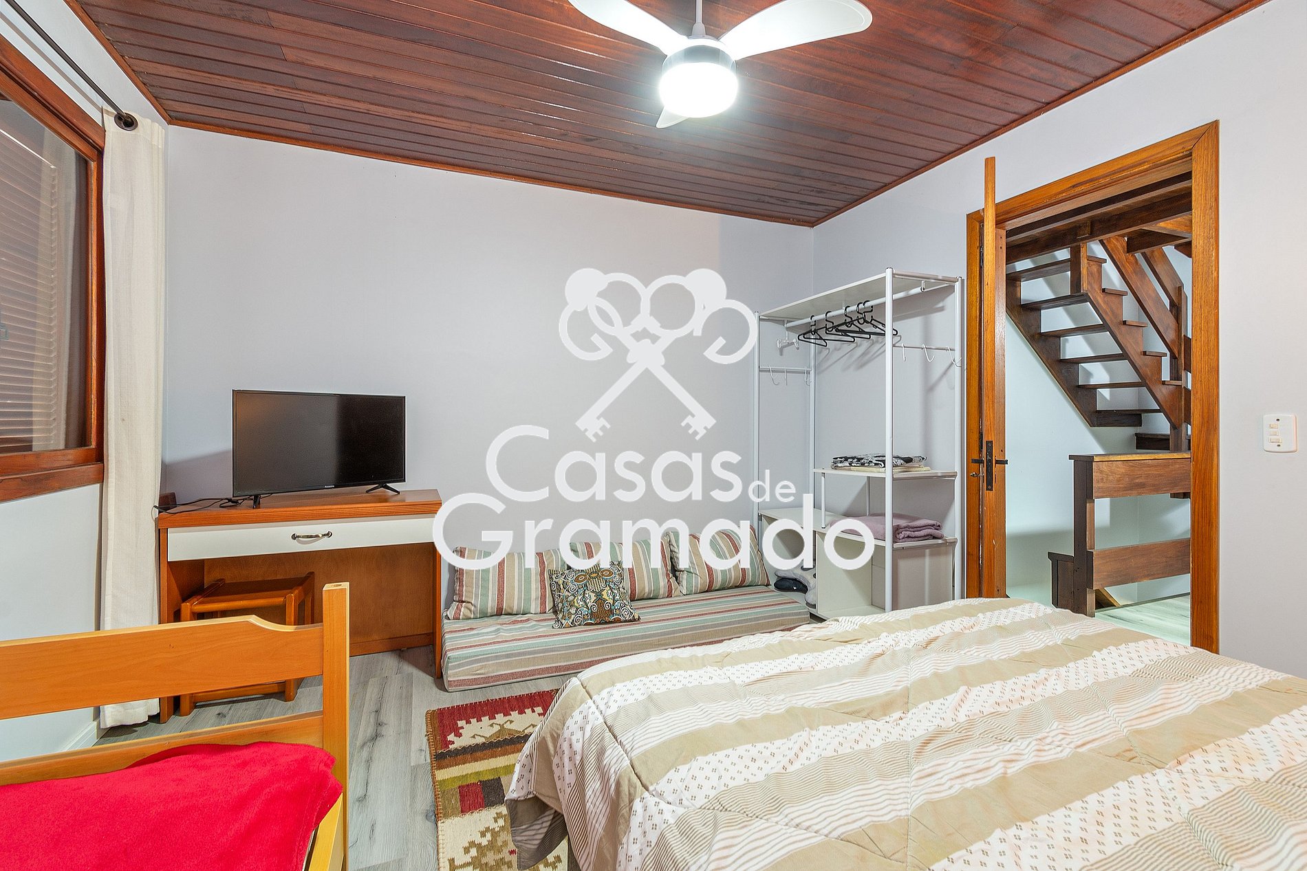 Há escadas para acesso aos quartos. Atenção as crianças pequenas e idosos.