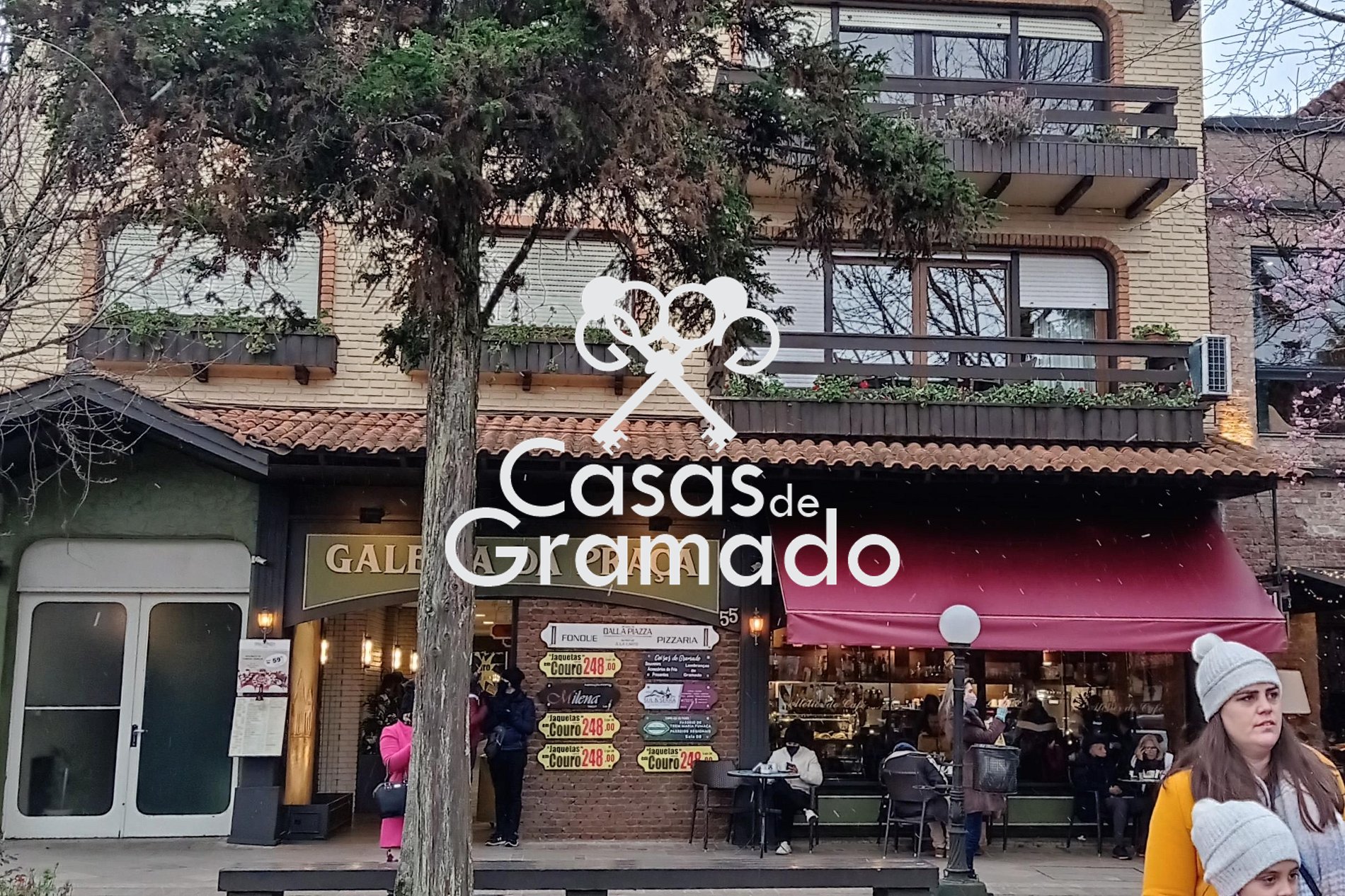 Por otro lado, basta con bajar unos escalones y estarás en el punto más céntrico donde sucede todo en la ciudad de Gramado. En medio de decenas de restaurantes, tiendas y cafés, además de donde se llevan a cabo los principales eventos, como Natal Luz, el Festival de Cine y otros.
