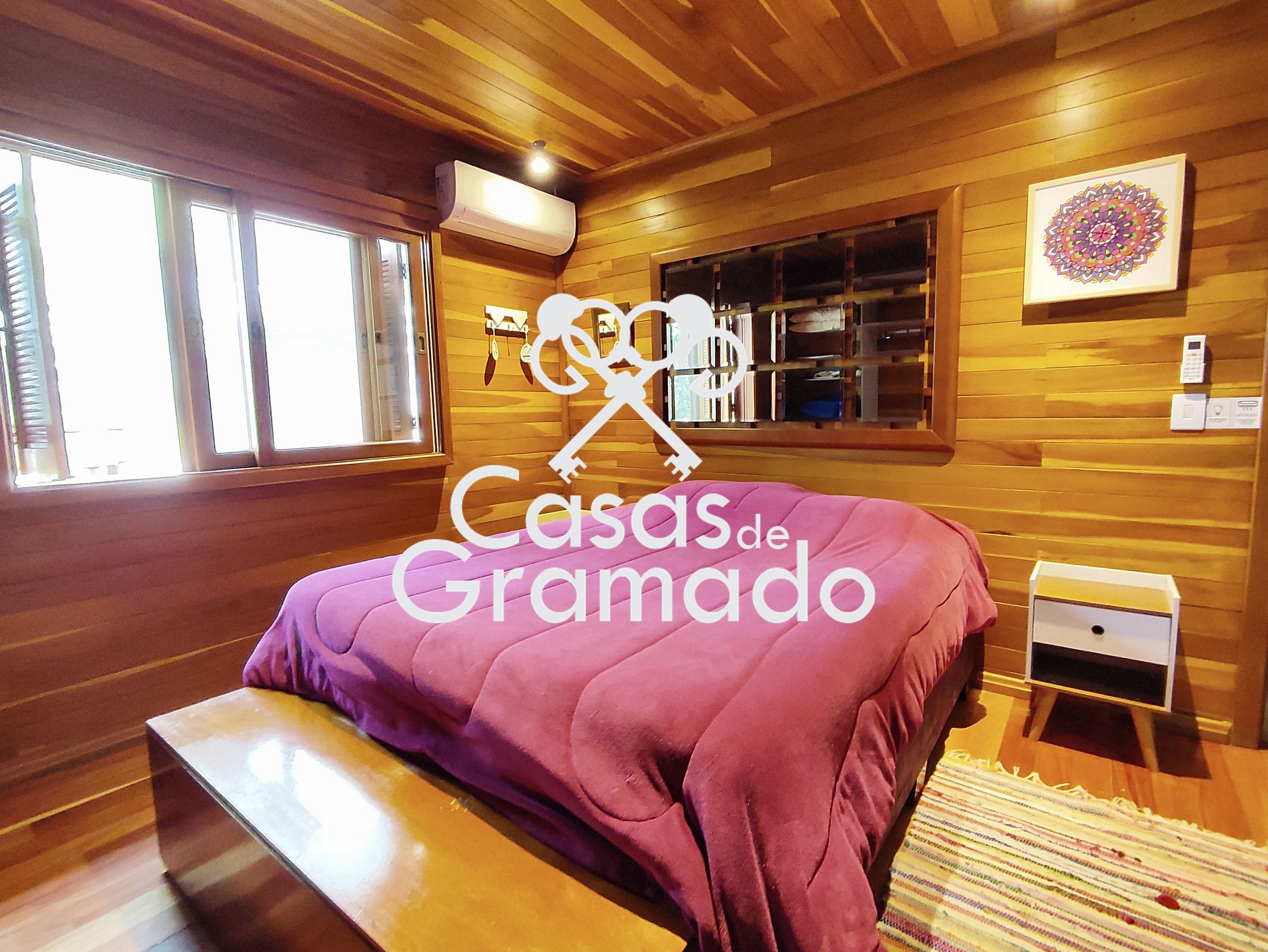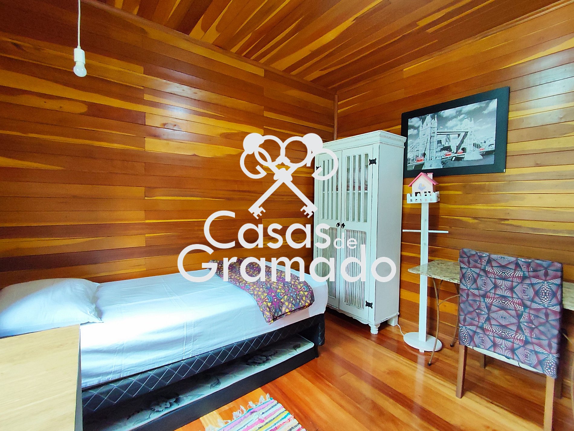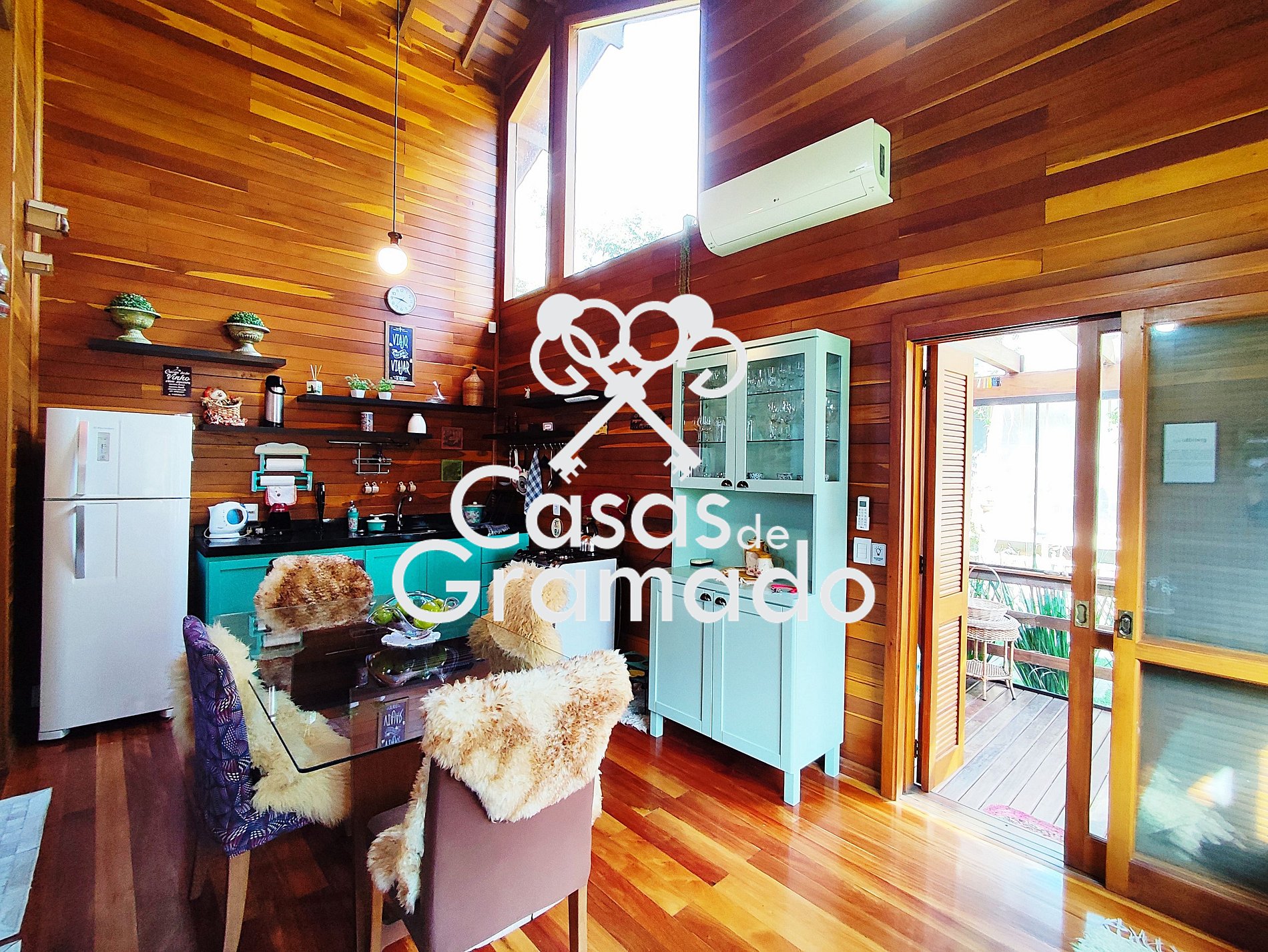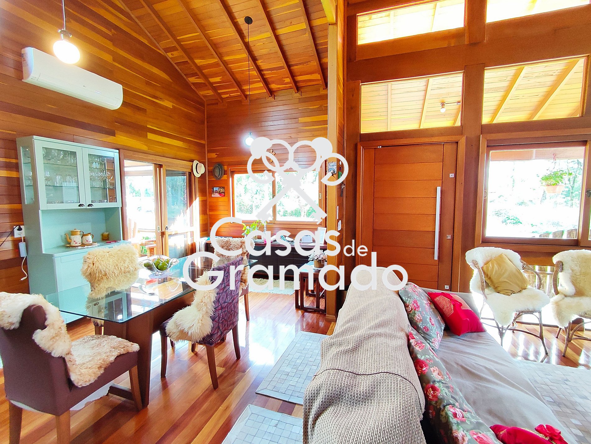 Possui 3 quartos e dois banheiros, wi fi, churrasqueira, solário, lareira, ar condicionado, cozinha completa e todas comodidades para uma temporada em alto estilo na Serra Gaúcha.