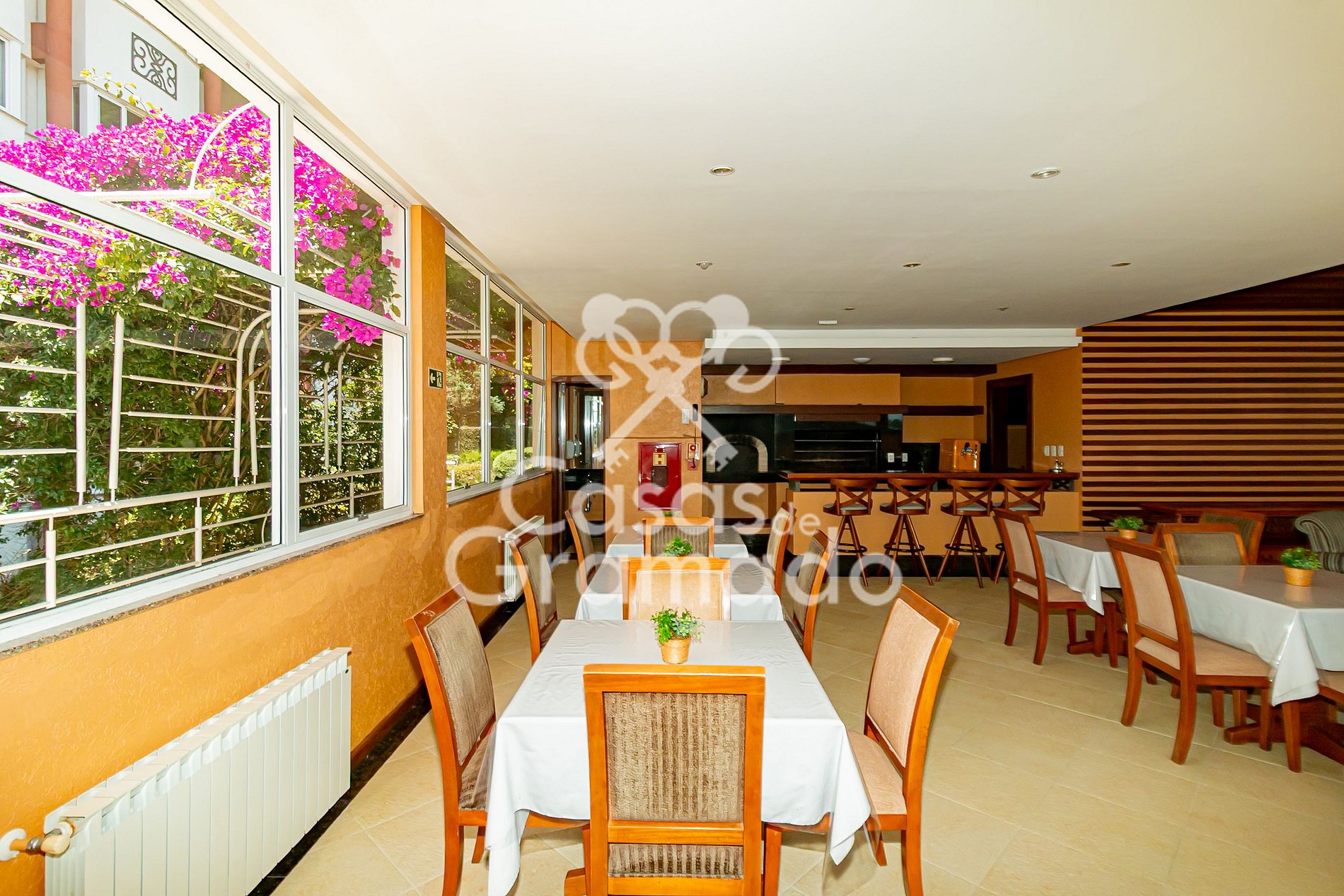 Apartamento de alto padrão em condomínio com piscina climatizada, playground, churrasqueira em quioske, salas de reunião, brinquedoteca, academia, sauna e muitas outras facilidades para uma estadia única em Gramado.