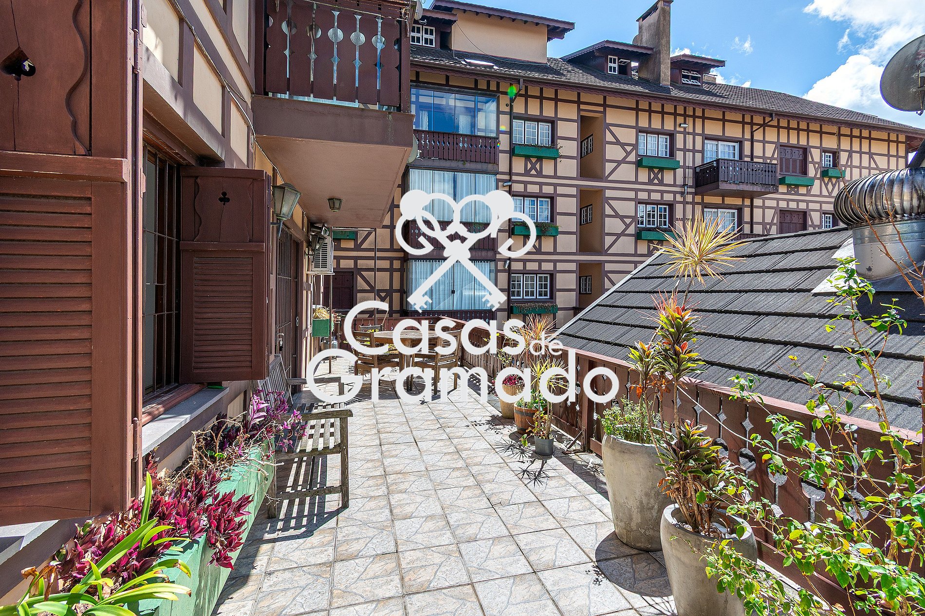 Impecável apartamento com 3 quartos, sendo 1 suíte,sala de estar ampla com sala de jantar, 2 banheiros, cozinha completa, e uma incrível área externa ajardinada em plena rua principal de Gramado.