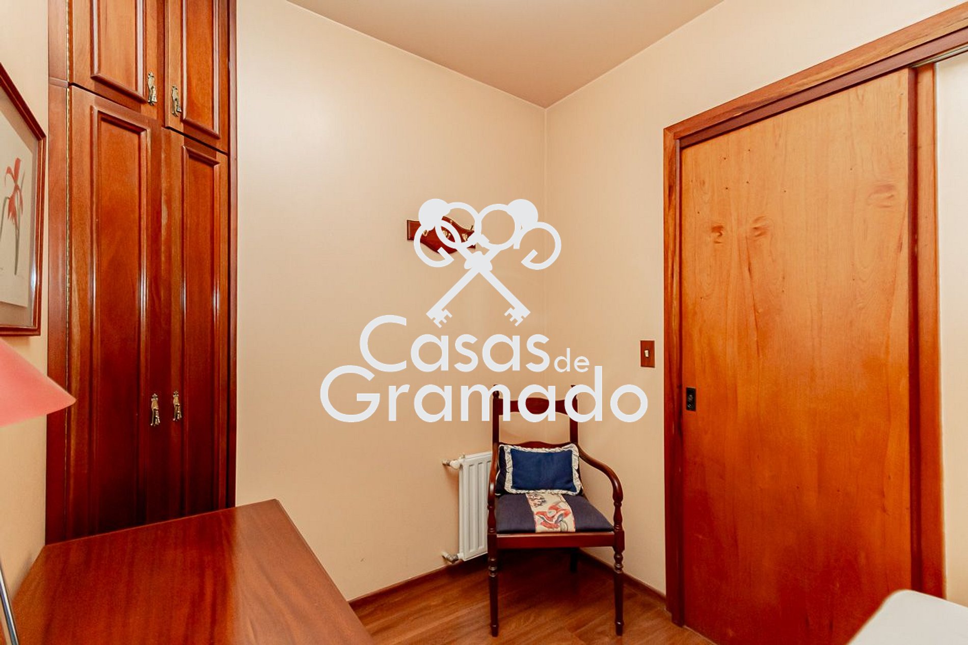 Um completo apartamento com 3 quartos, sala de estar, mezanino, varanda, dois banheiros, cozinha completa, elevador e garagem, além de uma linda vista para a cidade e as montanhas.